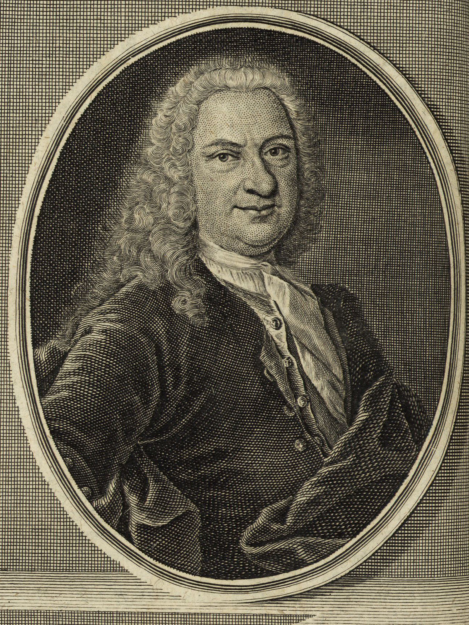 Porträt von Menz, Friedrich  (Deutsche Acta Eruditorum., 1735, 198. T., ungez. Bl. vor S. 381. [Zuschnitt auf Schmuckrahmen])