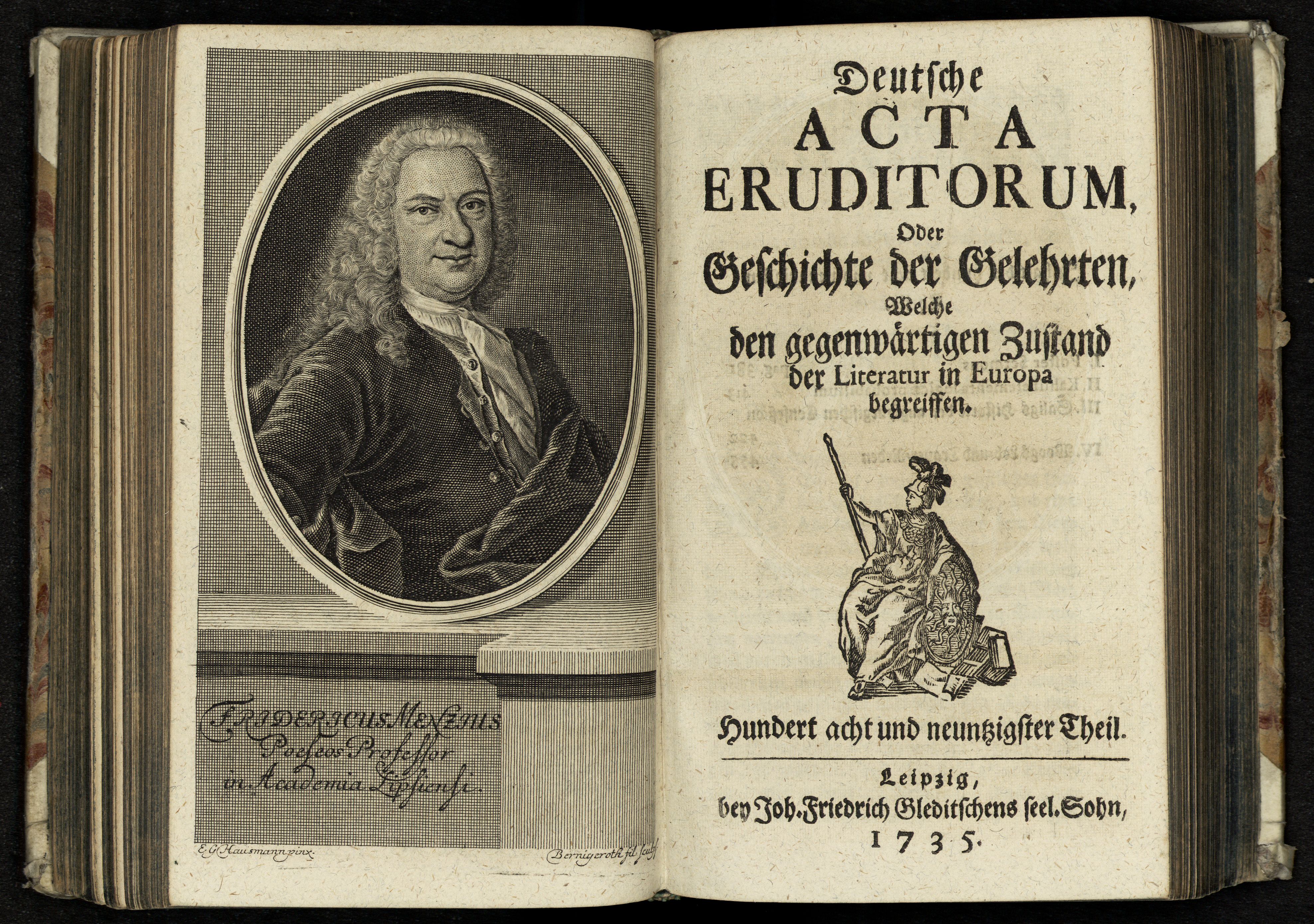 Porträt von Menz, Friedrich  (Deutsche Acta Eruditorum., 1735, 198. T., ungez. Bl. vor S. 381. [Doppelseite])