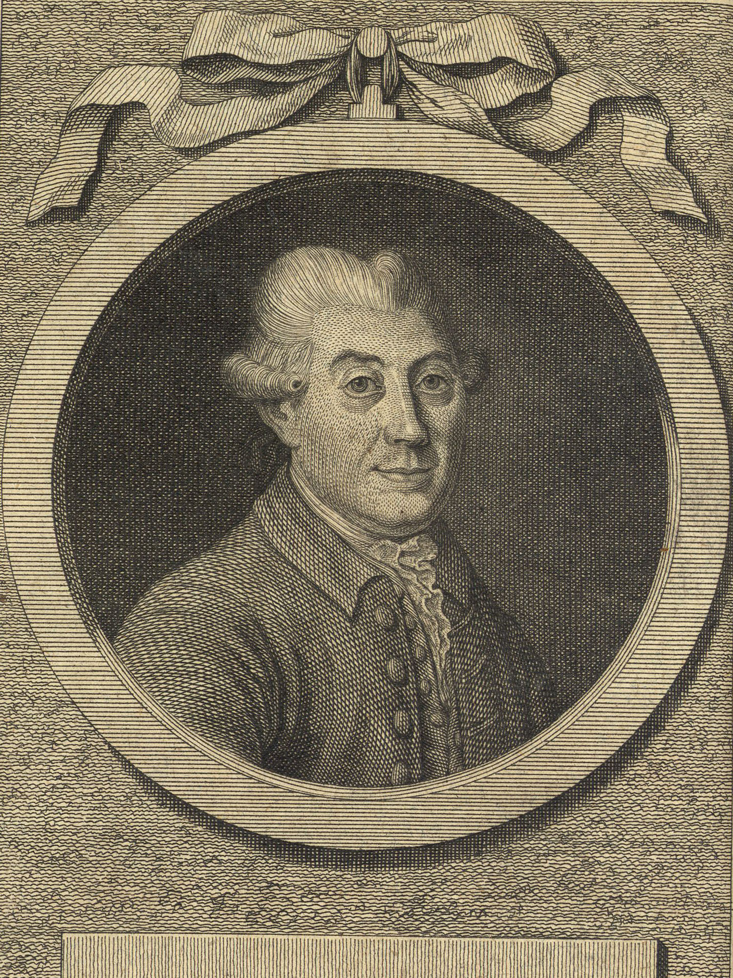 Porträt von Niebuhr, Carsten  (Allgemeine deutsche Bibliothek., 1781, 45. Bd., 1. St., ungez. Bl. am Anf. d. Bandes. [Zuschnitt auf Schmuckrahmen])