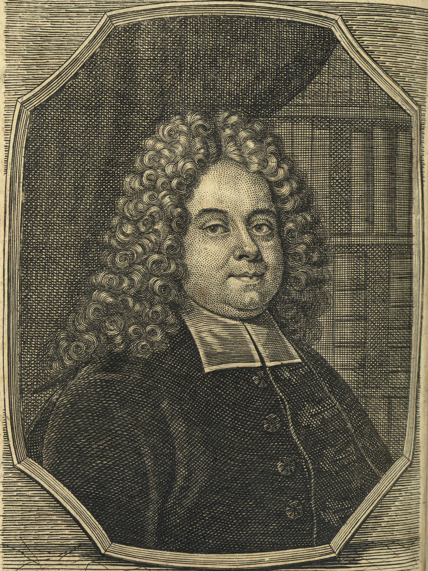 Porträt von Olearius, Gottfried  (Neuer Bücher-Saal der gelehrten Welt., 1711, 11. Oeffn., ungez. Bl. vor S. 805. [Zuschnitt auf Schmuckrahmen])