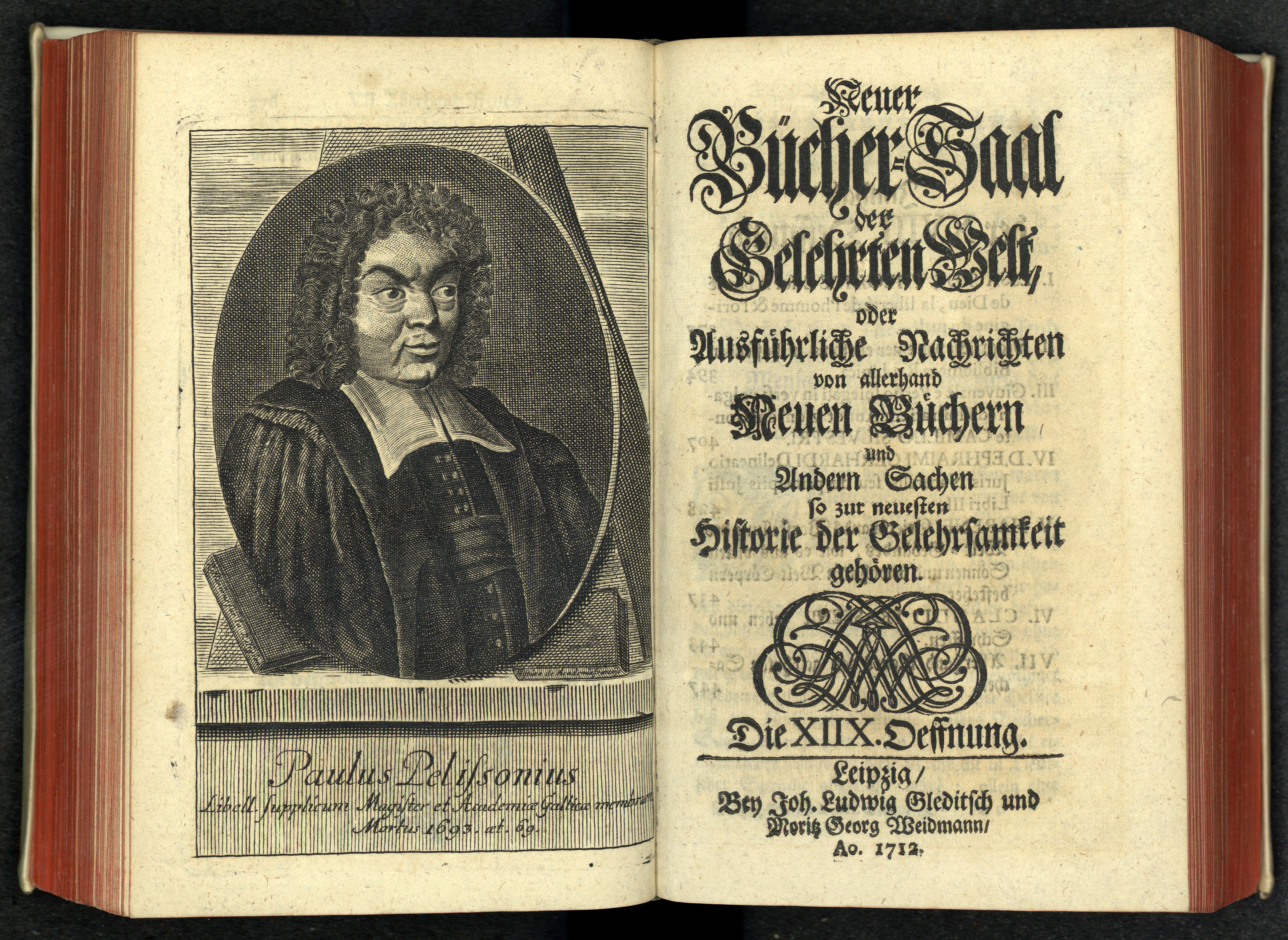 Porträt von Pellisson, Paul  (Neuer Bücher-Saal der gelehrten Welt., 1712, 18. Oeffn., ungez. Bl. vor S. 377. [Doppelseite])