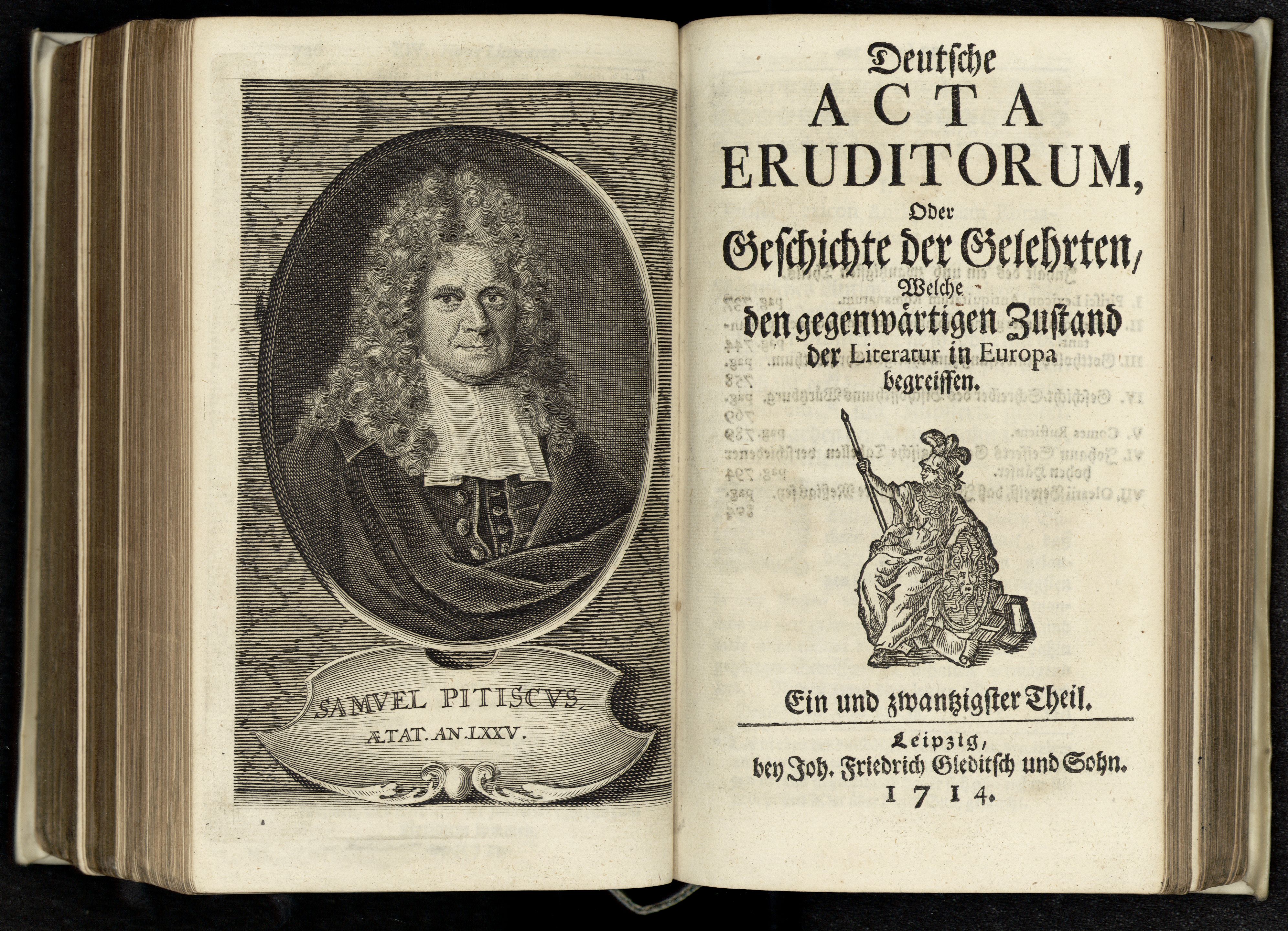 Porträt von Pitiscus, Samuel  (Deutsche Acta Eruditorum., 1714, 21. T., ungez. Bl. vor S. 737. [Doppelseite])