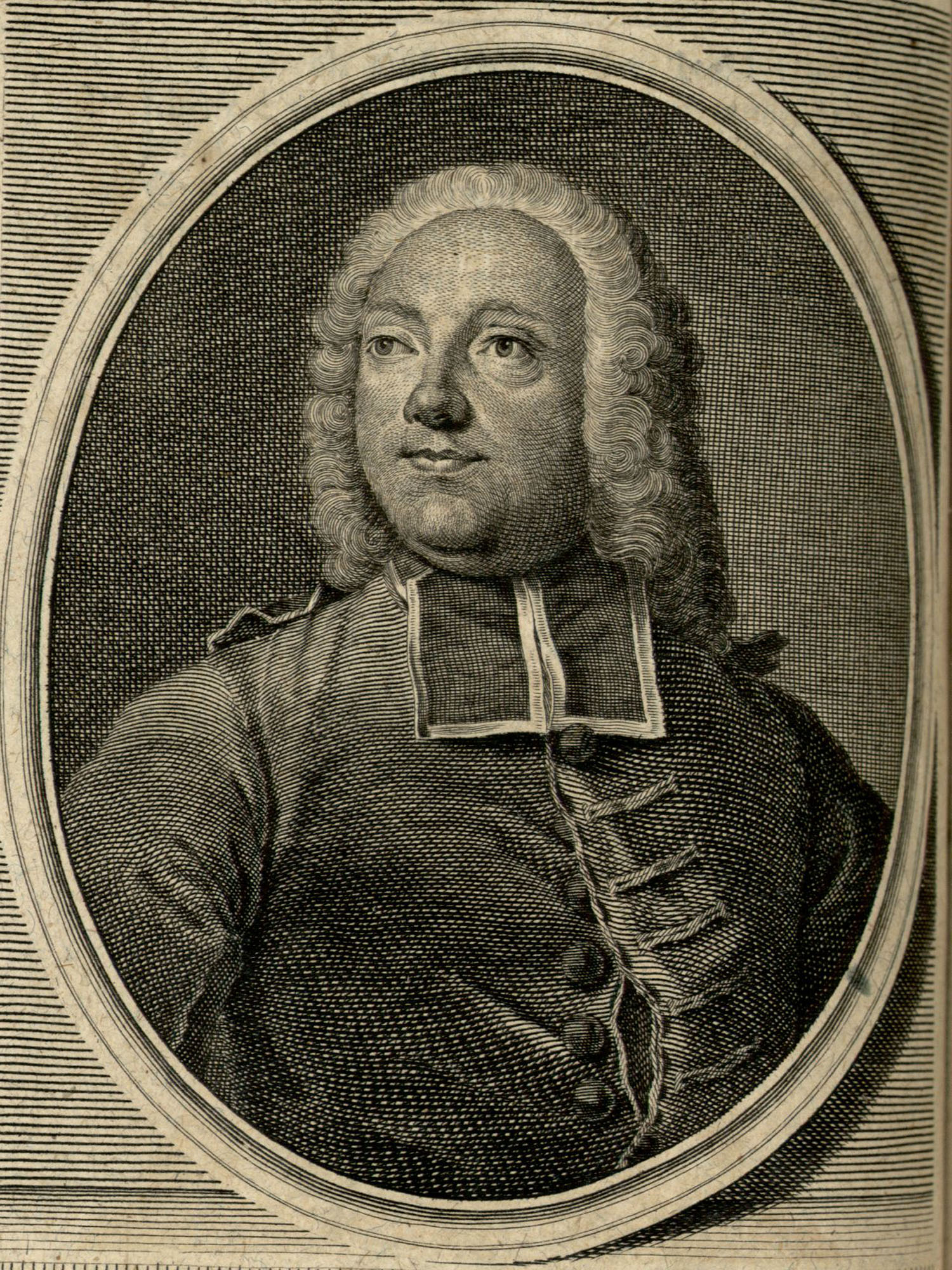 Porträt von Prévost d'Exilles, Antoine François  (Zuverläßige Nachrichten von dem gegenwärtigen Zustande der Wissenschaften., 1747, 90. T., ungez. Bl. vor S. 392. [Doppelseite])