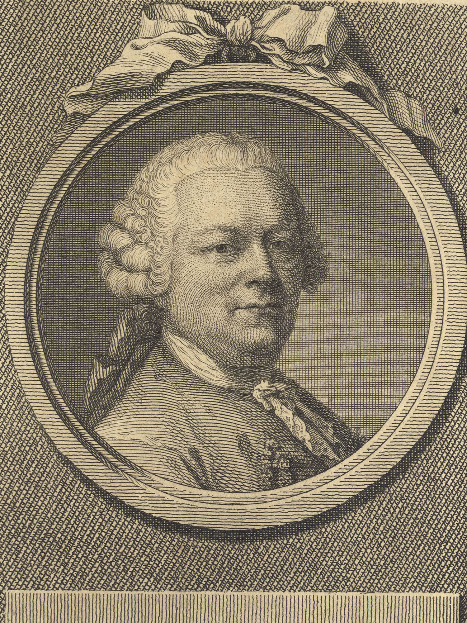 Porträt von Rabener, Gottlieb Wilhelm  (Neue Bibliothek der schönen Wissenschaften., 1770, 10. Bd., 1. St., ungez. Bl. am Anf. d. Bandes. [Zuschnitt auf Schmuckrahmen])