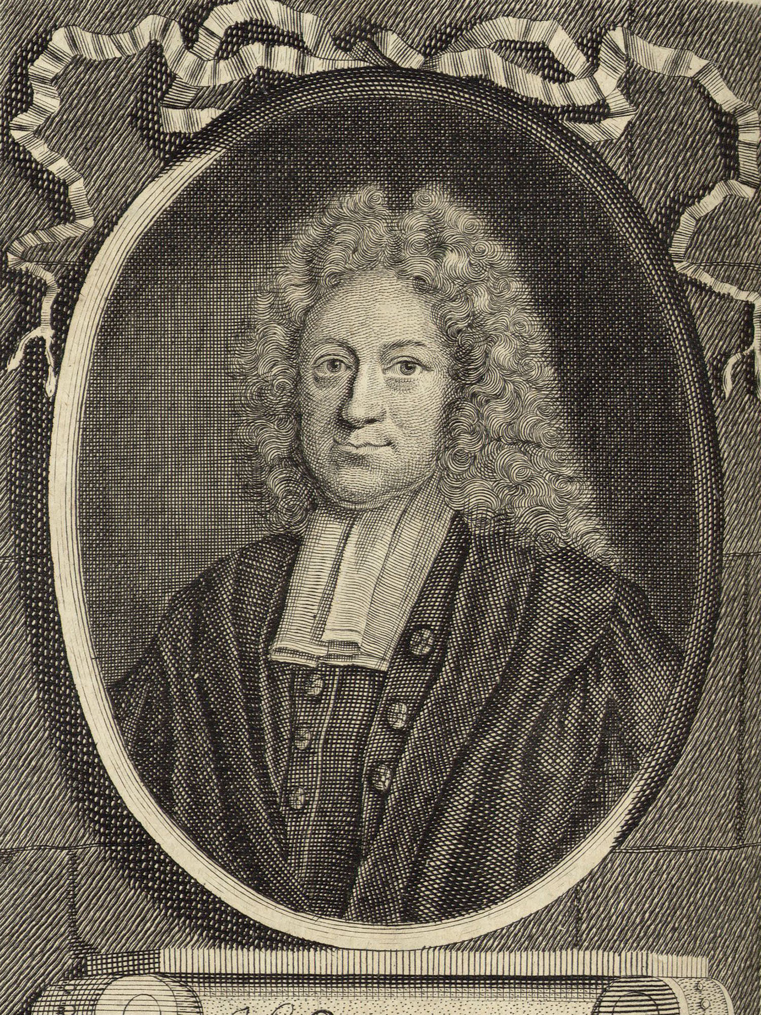 Porträt von Reelant, Adriaan  (Deutsche Acta Eruditorum., 1716, 42. T., ungez. Bl. vor S. 381. [Zuschnitt auf Schmuckrahmen])
