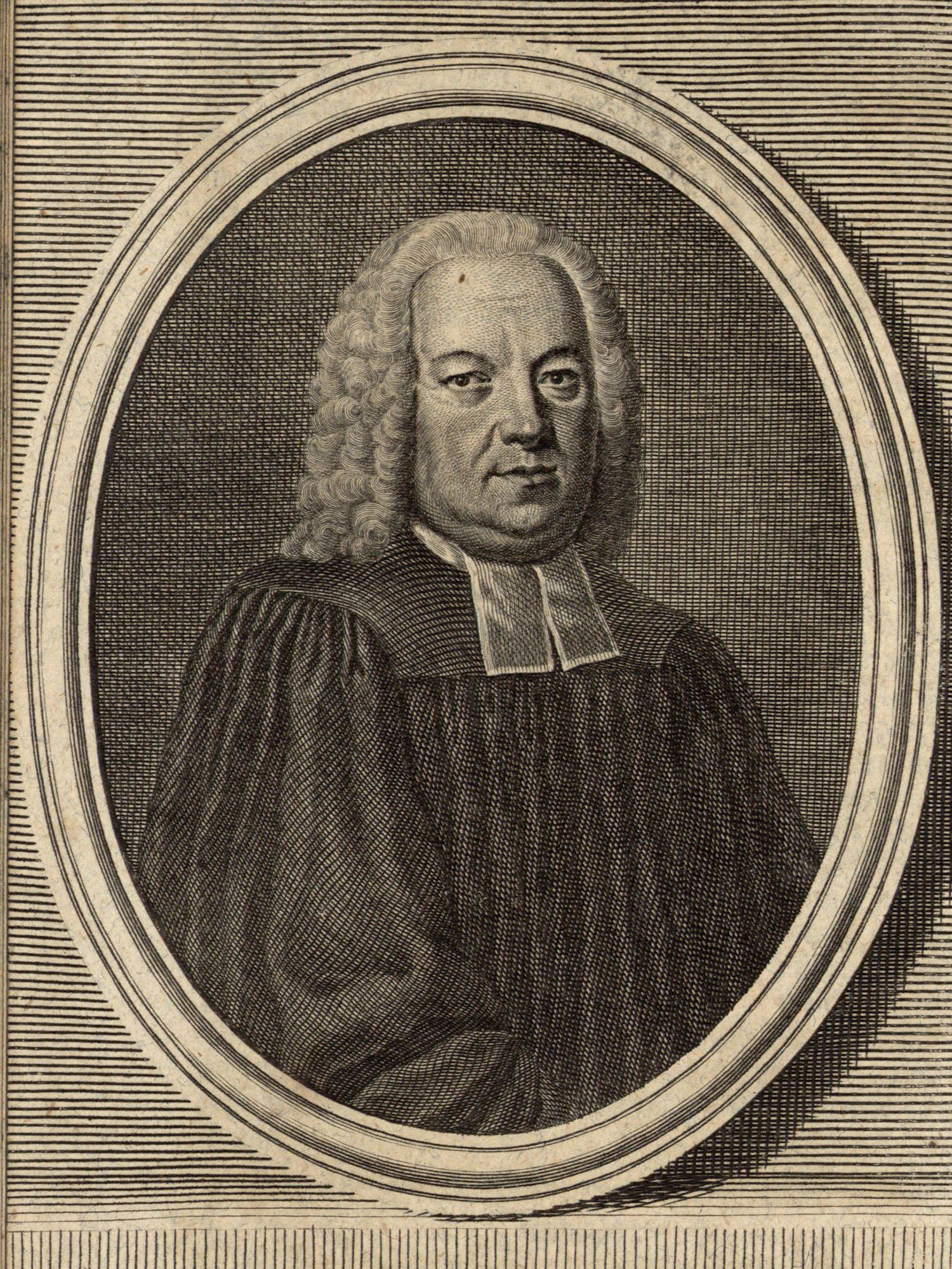 Porträt von Rieger, Georg Konrad  (Zuverläßige Nachrichten von dem gegenwärtigen Zustande der Wissenschaften., 1748, 98. T., ungez. Bl. vor S. 82. [Zuschnitt auf Schmuckrahmen])