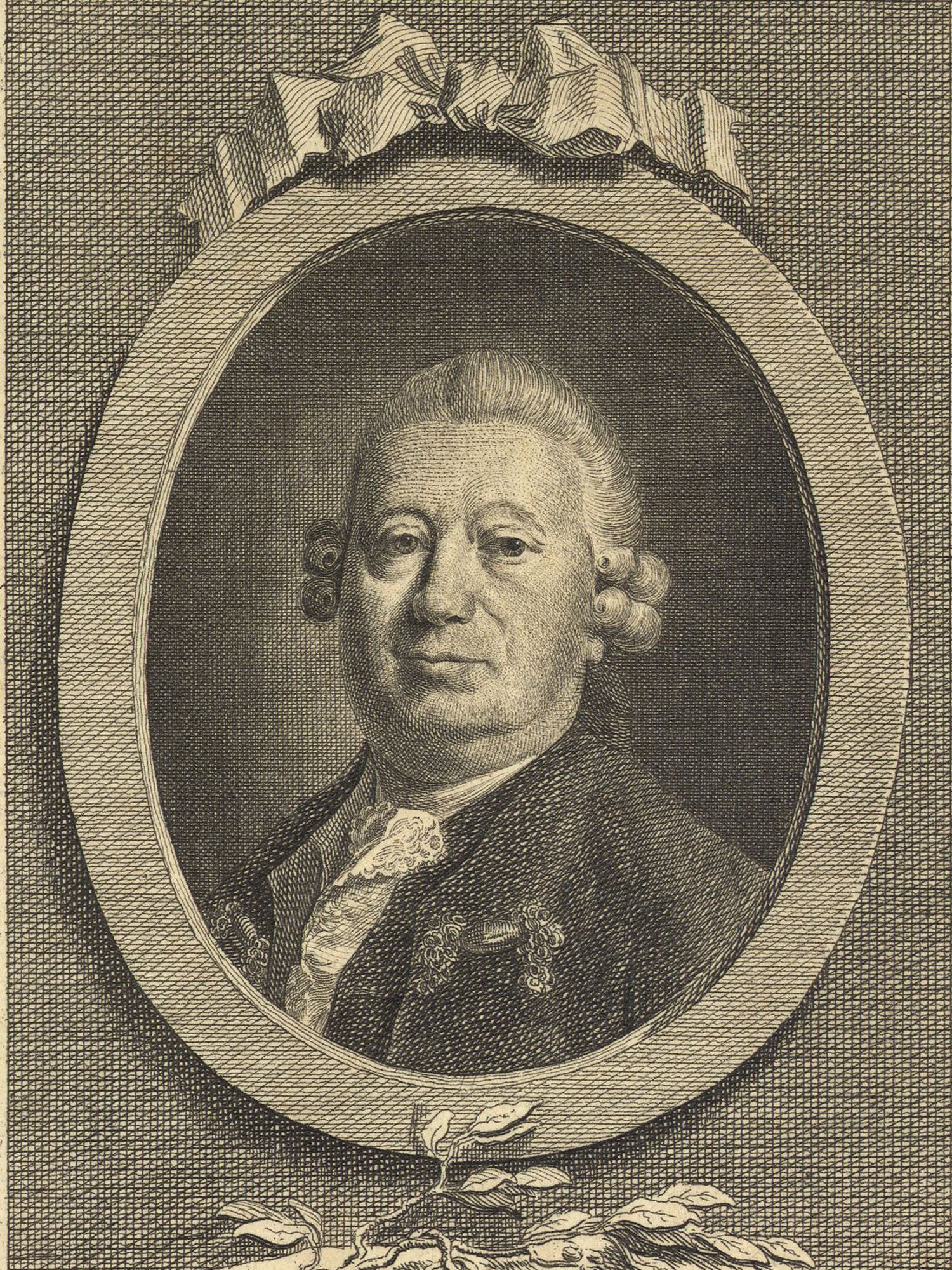 Porträt von Rolle, Johann Heinrich  (Neue Bibliothek der schönen Wissenschaften., 1782, 27. Bd., 1. St., ungez. Bl. am Anf. d. Bandes. [Zuschnitt auf Schmuckrahmen])