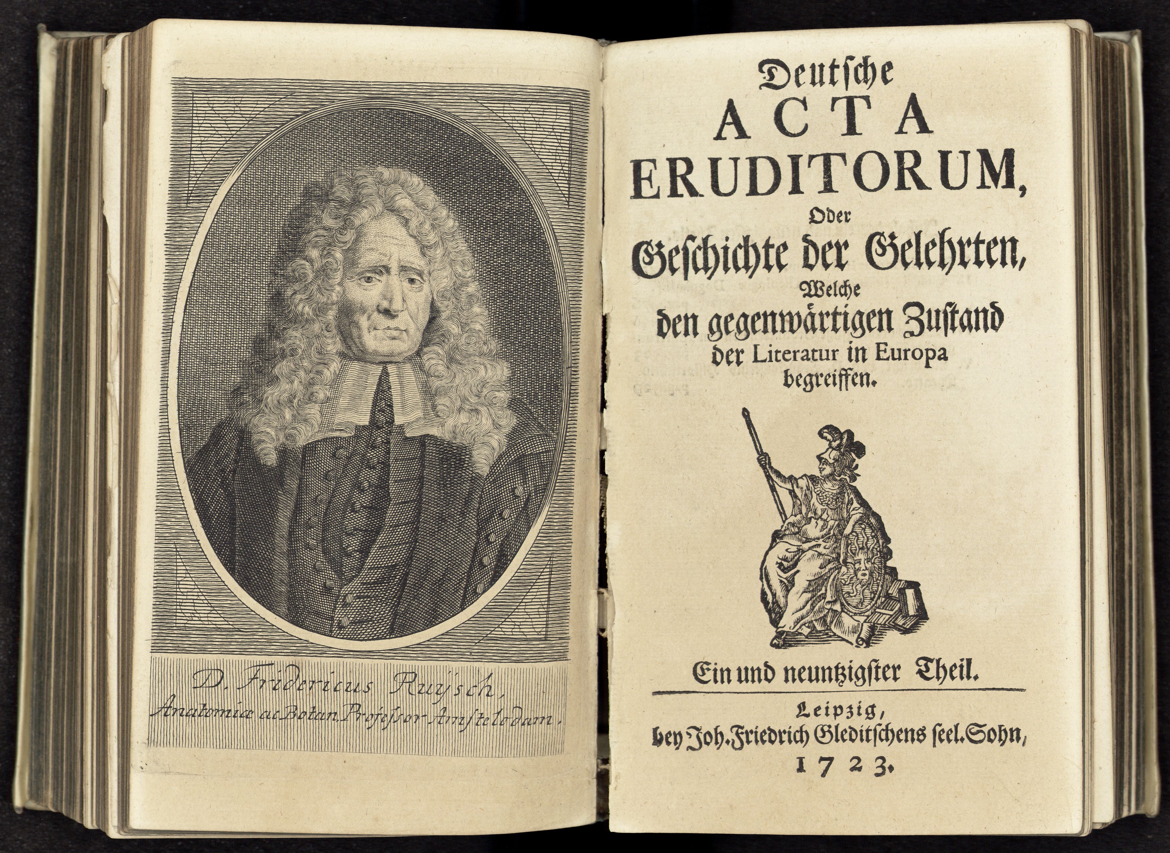 Porträt von Ruysch, Frederik  (Deutsche Acta Eruditorum., 1723, 91. T., ungez. Bl. vor S. 457. [Doppelseite])