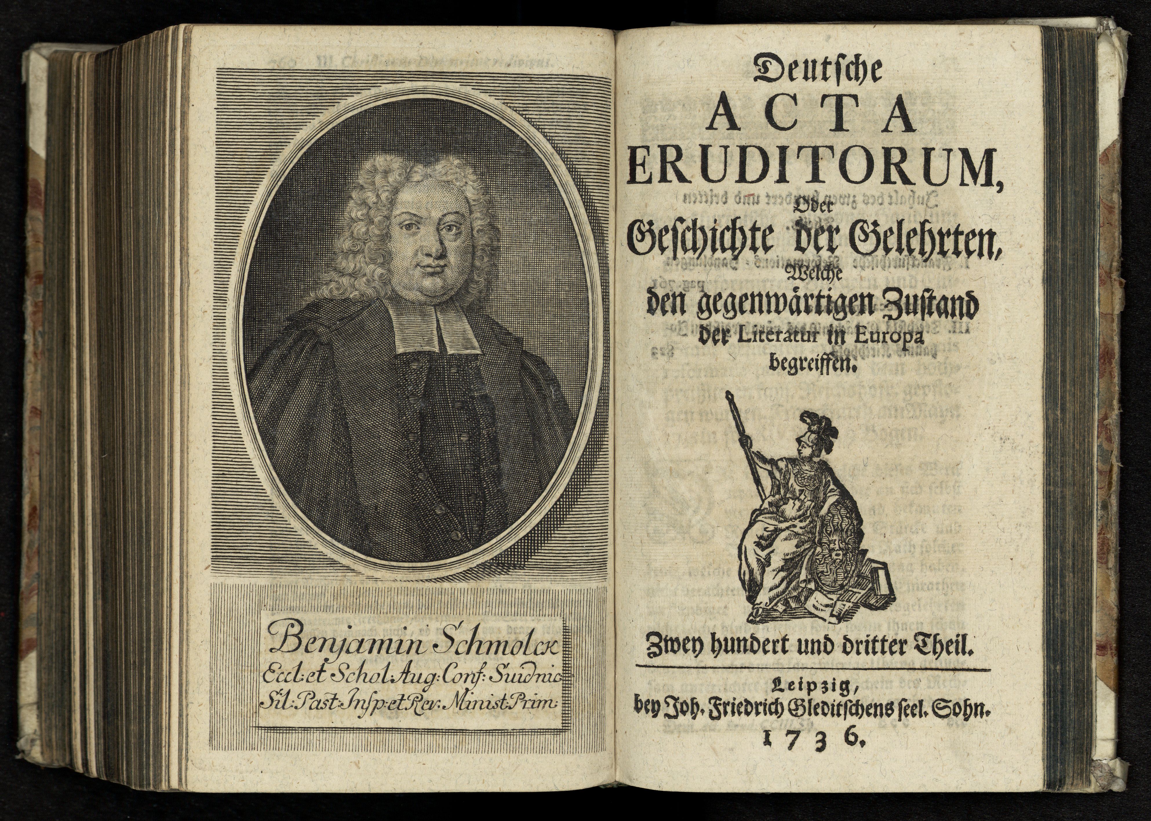 Porträt von Schmolck, Benjamin  (Deutsche Acta Eruditorum., 1736, 203. T., ungez. Bl. vor S. 761. [Doppelseite])