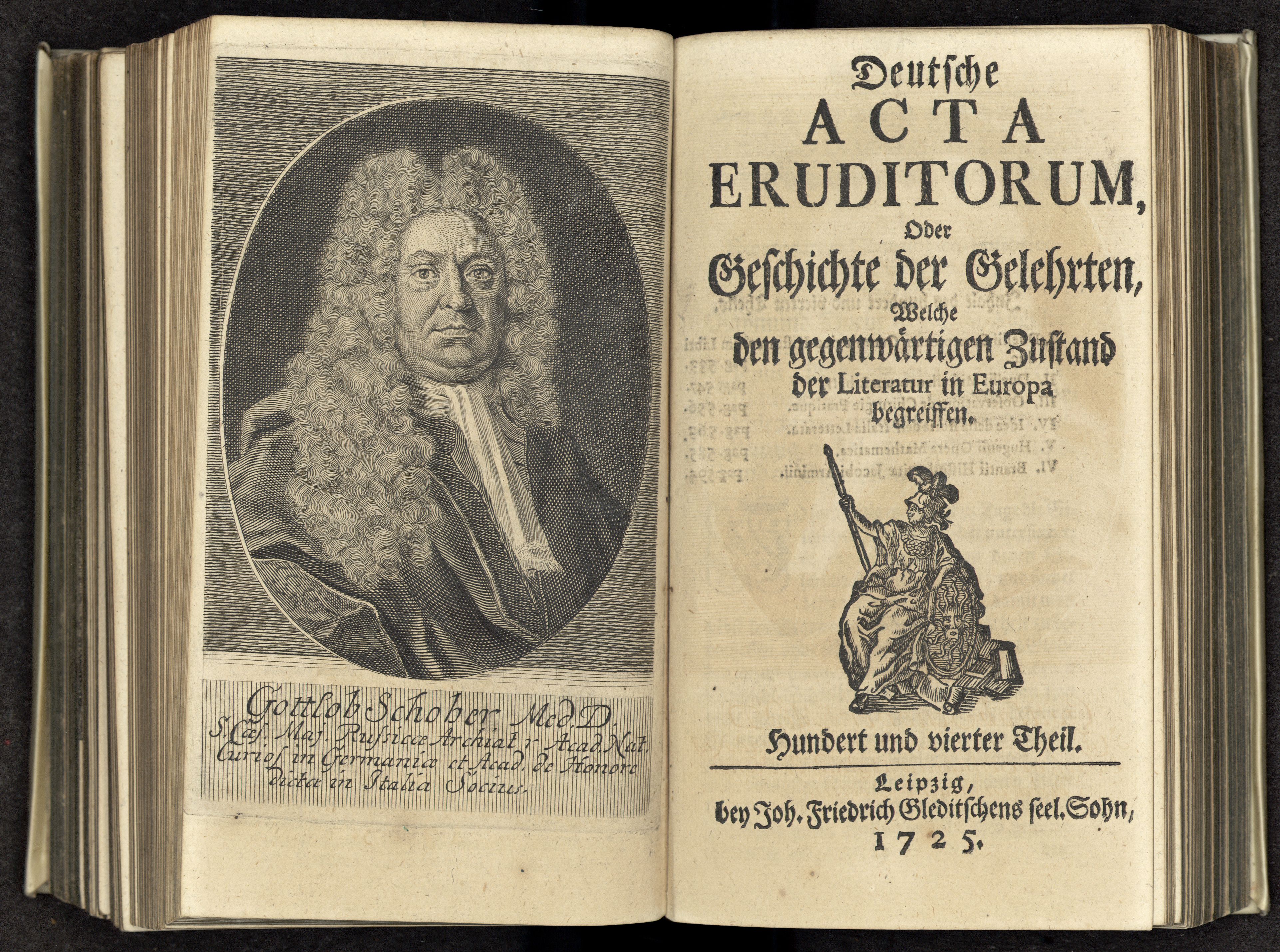 Porträt von Schober, Gottlob  (Deutsche Acta Eruditorum., 1725, 104. T., ungez. Bl. vor S. 533. [Doppelseite])