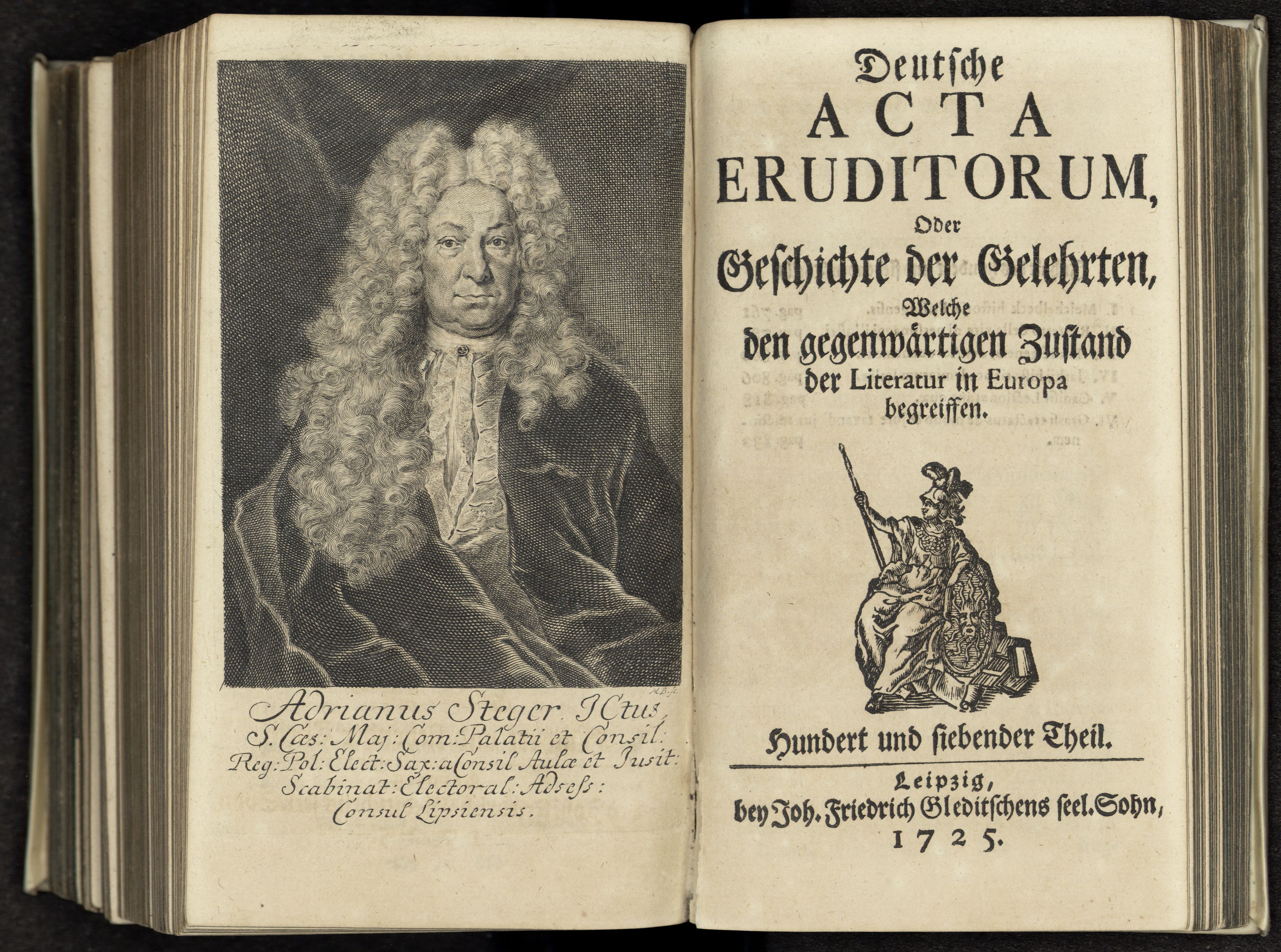 Porträt von Steger, Adrian  (Deutsche Acta Eruditorum., 1725, 107. T., ungez. Bl. vor S. 761. [Doppelseite])
