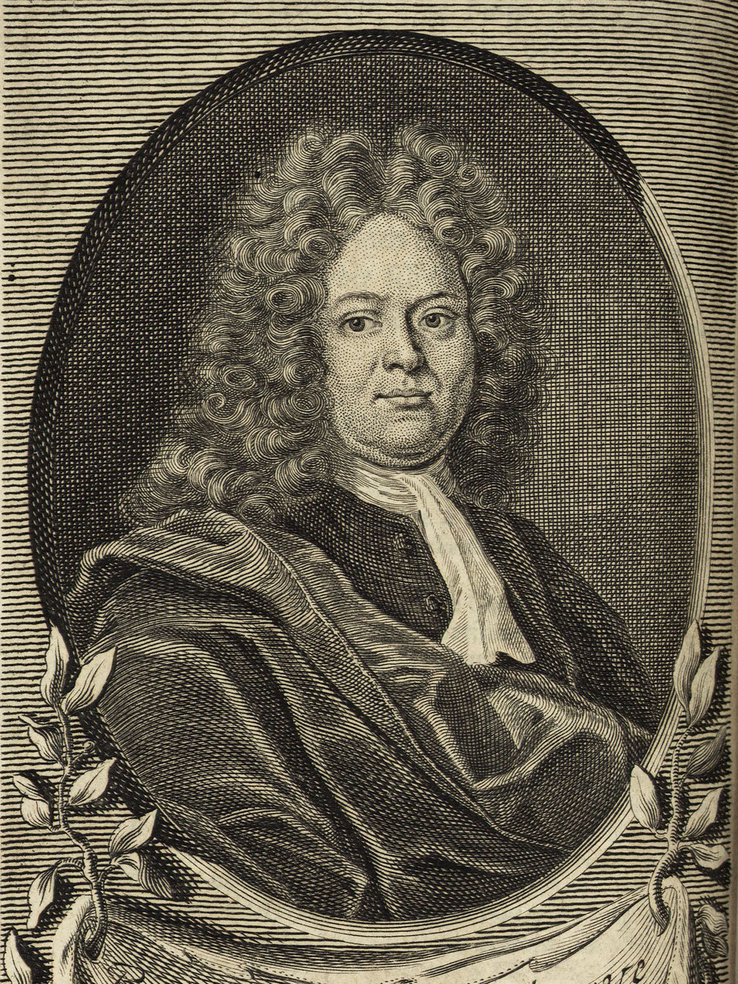 Porträt von Struve, Burkhard Gotthelf  (Deutsche Acta Eruditorum., 1713, 12. T., ungez. Bl. vor S. 977. [Zuschnitt auf Schmuckrahmen])