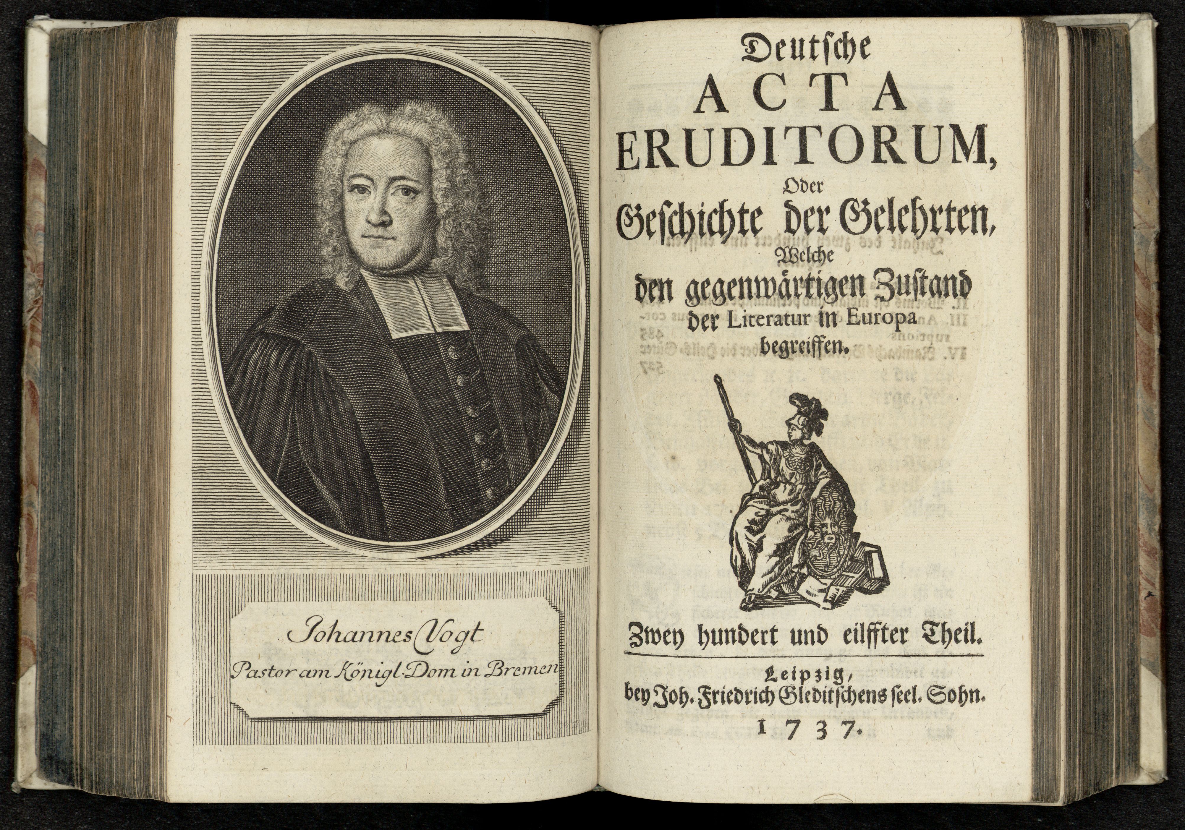 Porträt von Vagt, Peter  (Deutsche Acta Eruditorum., 1737, 211. T., ungez. Bl. vor S. 457. [Doppelseite])