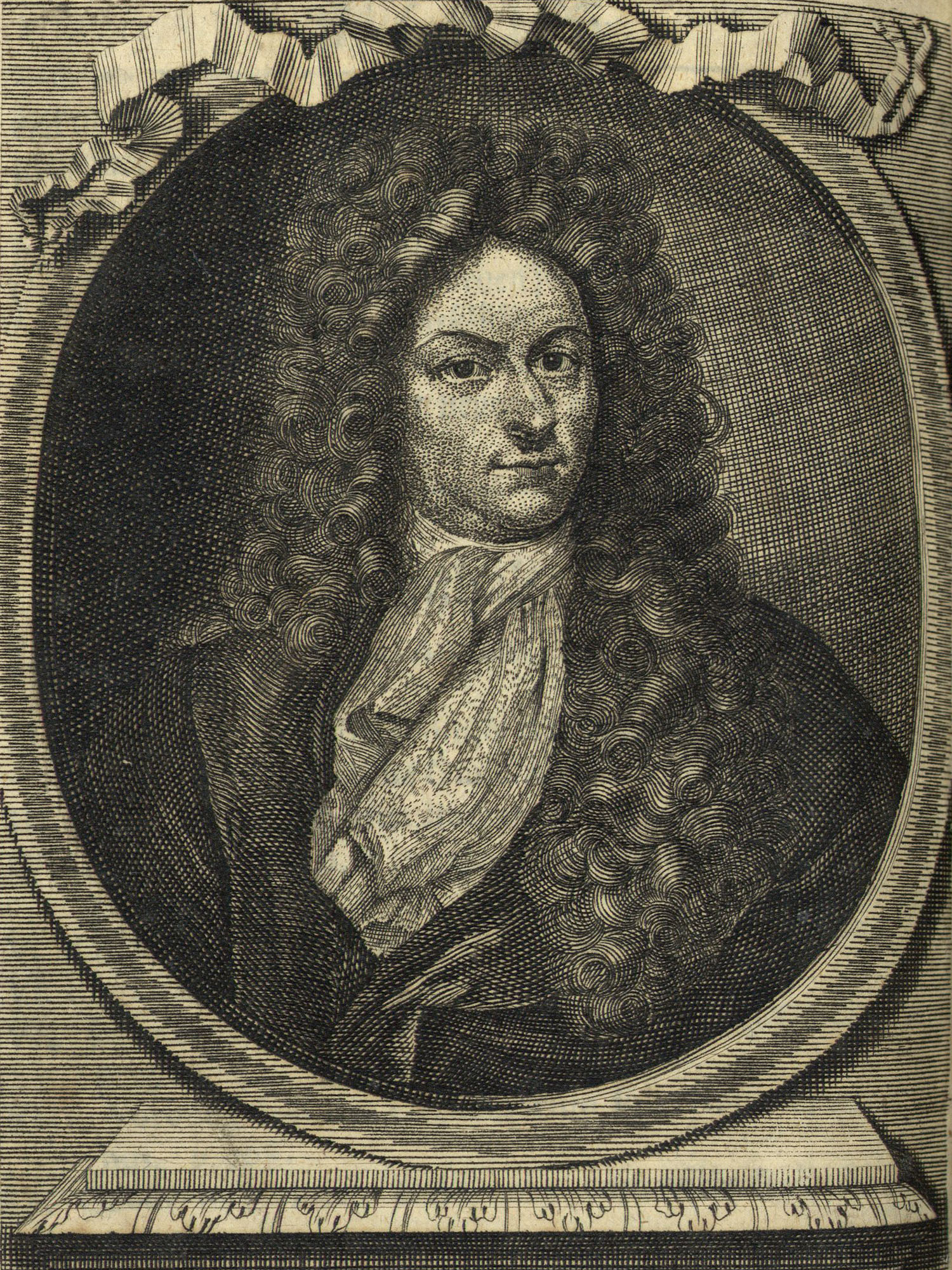 Porträt von Wedel, Georg Wolfgang  (Neue Bibliothec oder Nachricht und Urtheile von neuen Büchern., 1710, 9. St., ungez. Bl. S. 734. [Zuschnitt auf Schmuckrahmen])