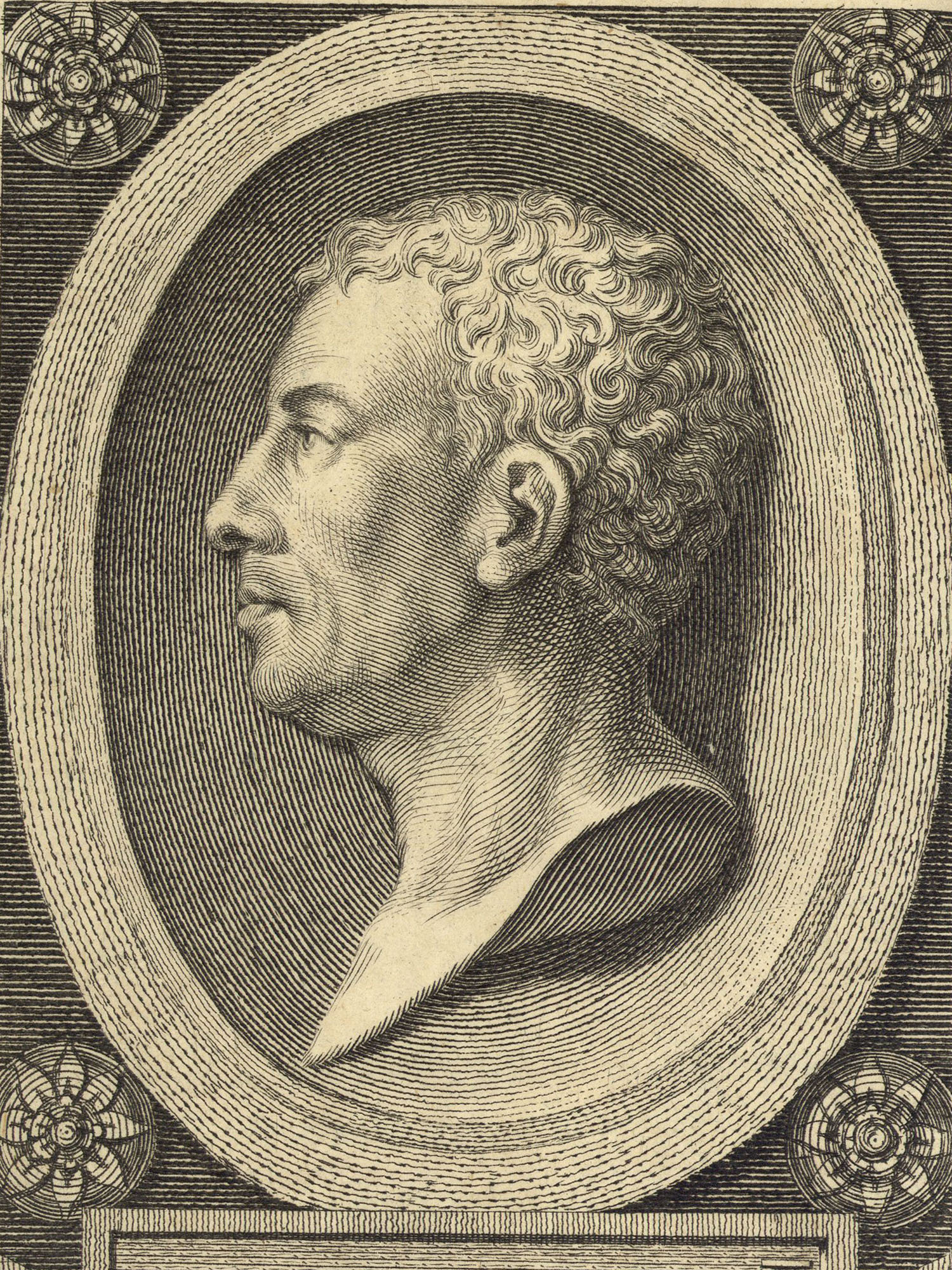 Porträt von Winckelmann, Johann Joachim  (Neue Bibliothek der schönen Wissenschaften., 1766, 3. Bd., 1. St., ungez. Bl. am Anf. d. Bandes. [Zuschnitt auf Schmuckrahmen])