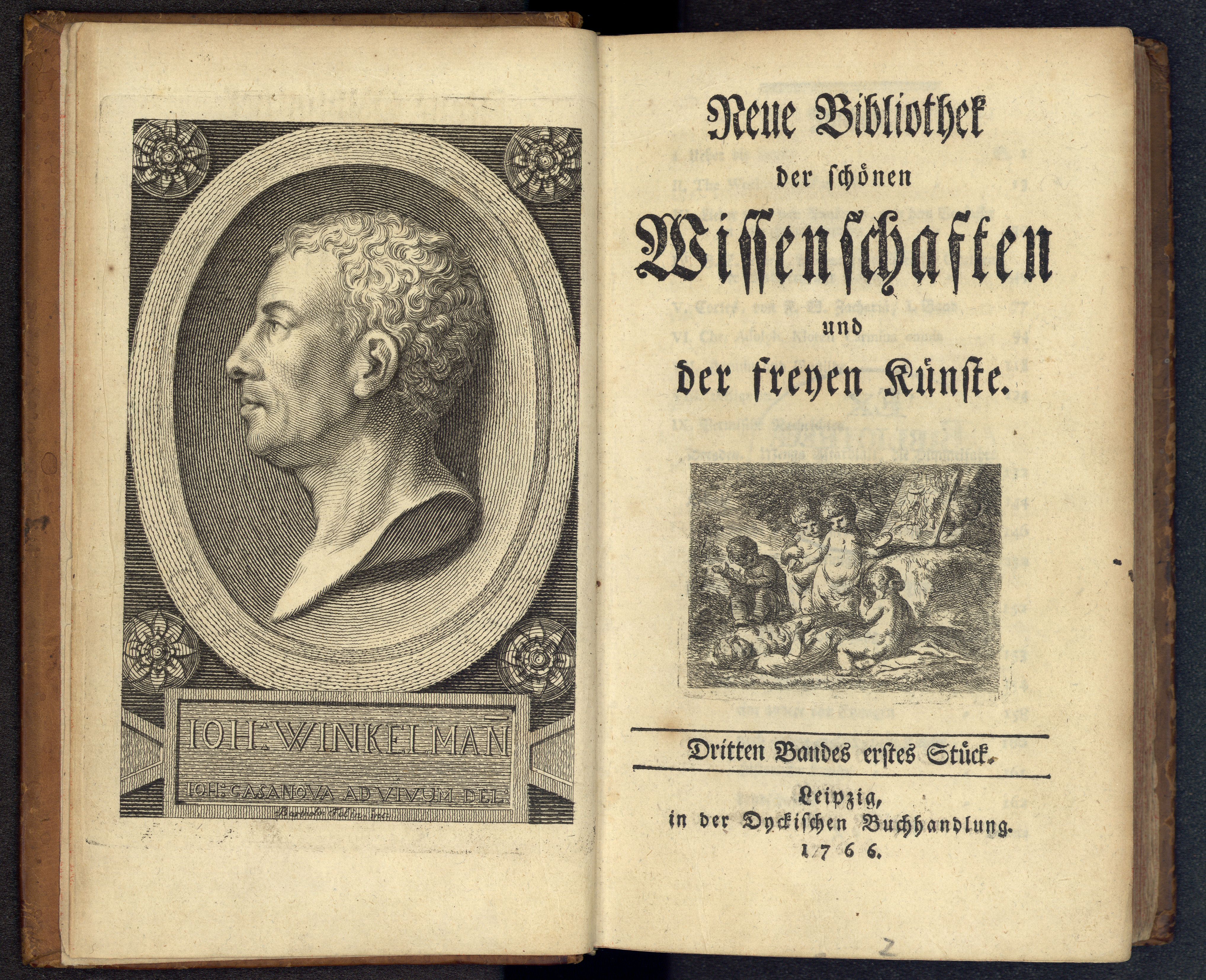 Porträt von Winckelmann, Johann Joachim  (Neue Bibliothek der schönen Wissenschaften., 1766, 3. Bd., 1. St., ungez. Bl. am Anf. d. Bandes. [Doppelseite])