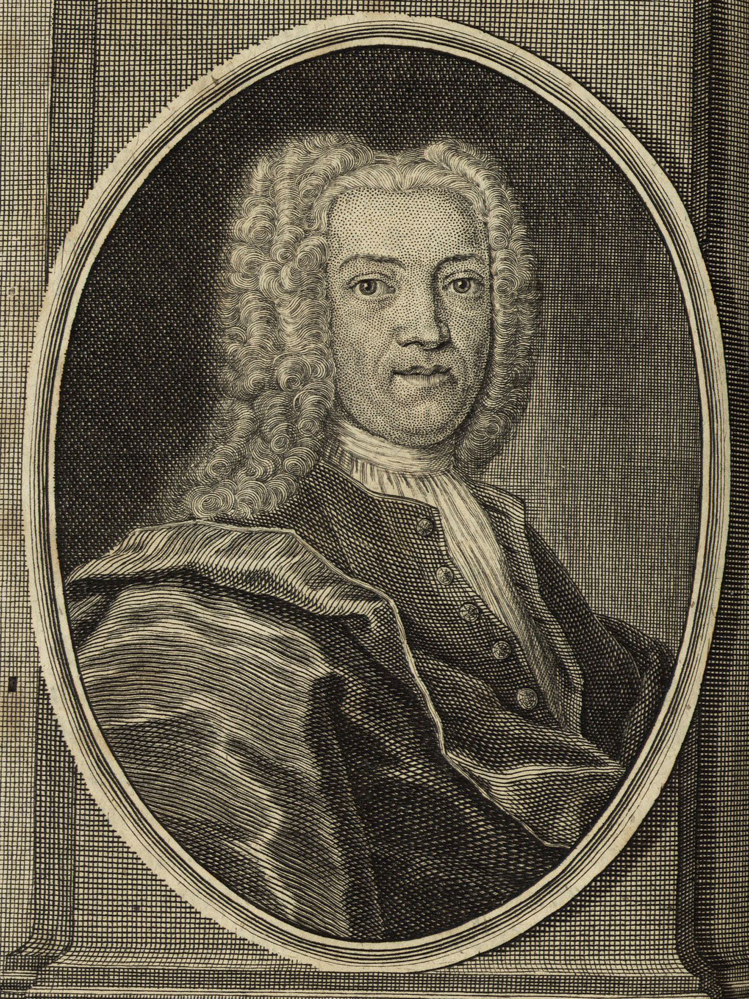 Porträt von Zwierlein, Johann Jacob von  (Deutsche Acta eruditorum., 1735, 190. T., ungez. Bl. v. S. 685. [Zuschnitt auf Schmuckrahmen])
