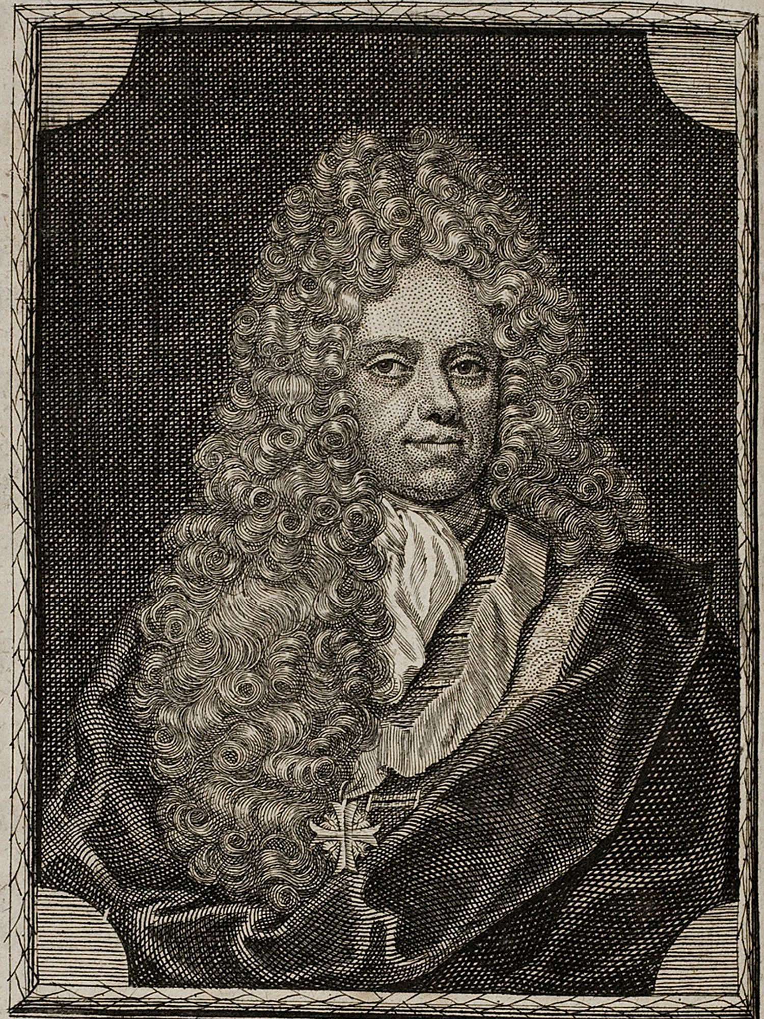 Porträt von Besser, Johann von  (Neue Bibliothec oder Nachricht und Urtheile von neuen Büchern., 1711, 15. St., ungez. Bl. vor S. 367. [Zuschnitt auf Schmuckrahmen])