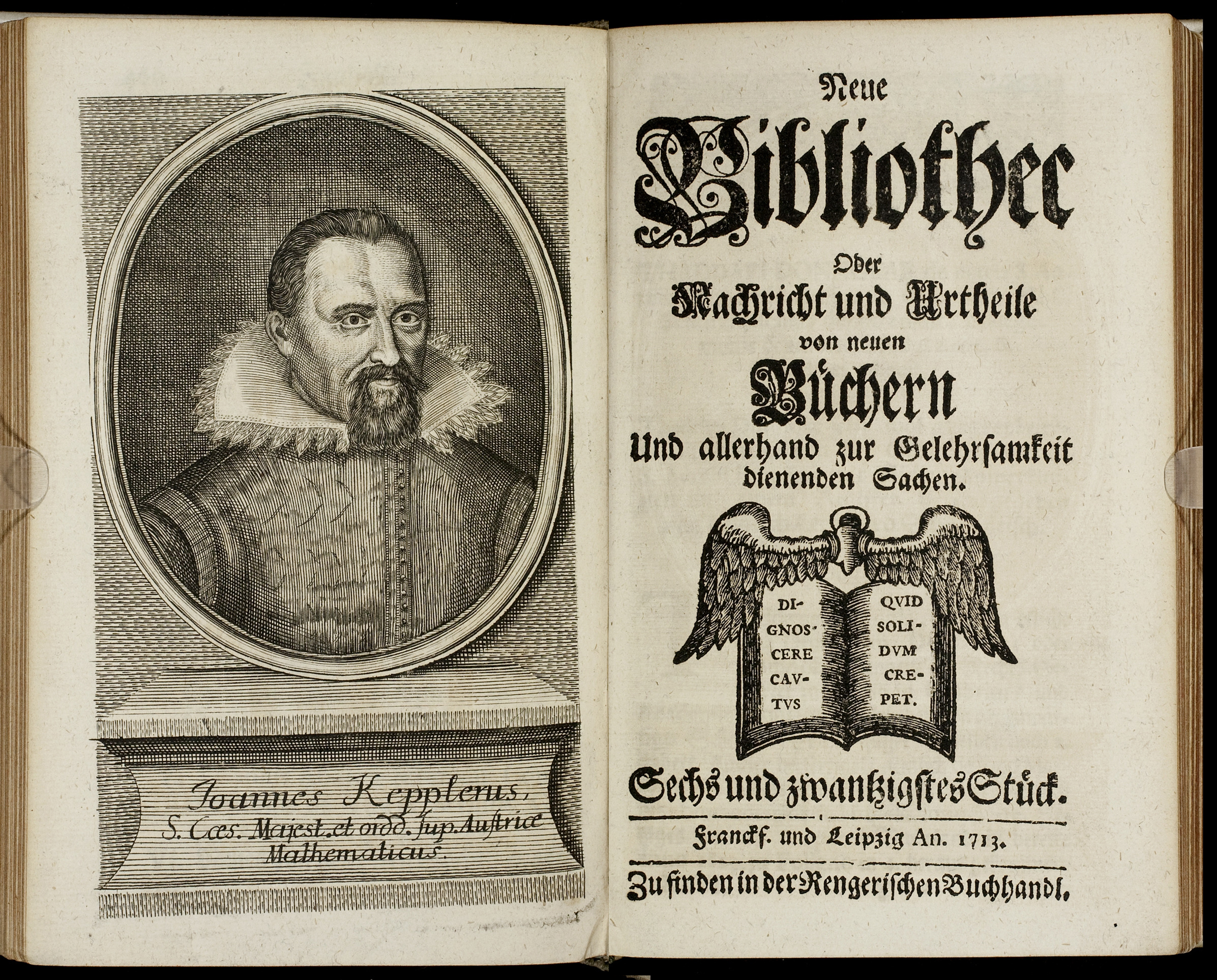 Porträt von Kepler, Johannes  (Neue Bibliothec oder Nachricht und Urtheile von neuen Büchern., 1713, 26. St., ungez. Bl. vor S. 461. [Doppelseite])