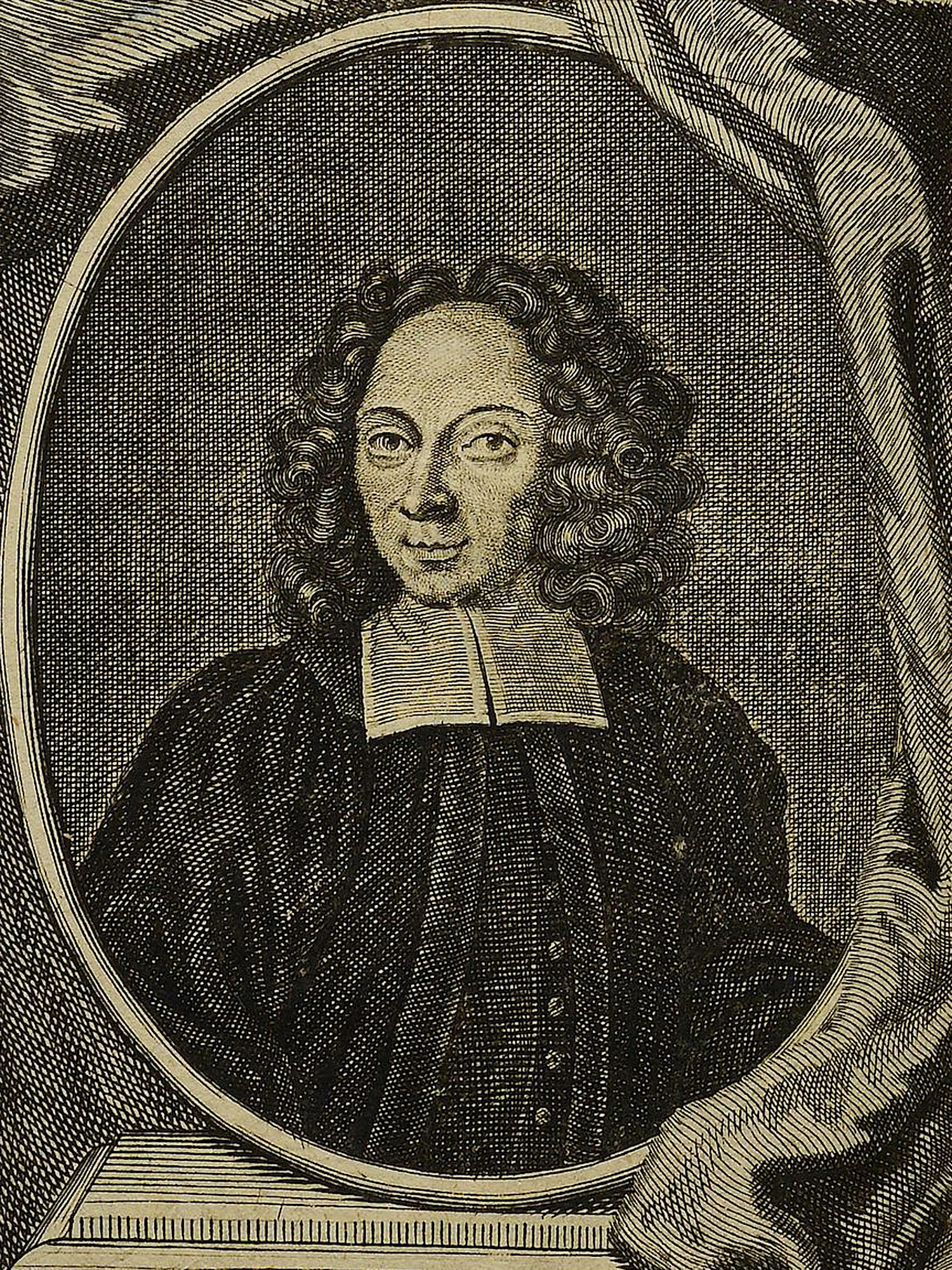 Porträt von Löscher, Valentin Ernst  (Die Gelehrte Fama, welche den gegenwärtigen Zustand der gelehrten Welt und sonderlich derer deutschen Universitäten entdecket., 1712, 23/24. T., ungez. Bl. am Anf. d. Stückes. [Zuschnitt auf Schmuckrahmen])