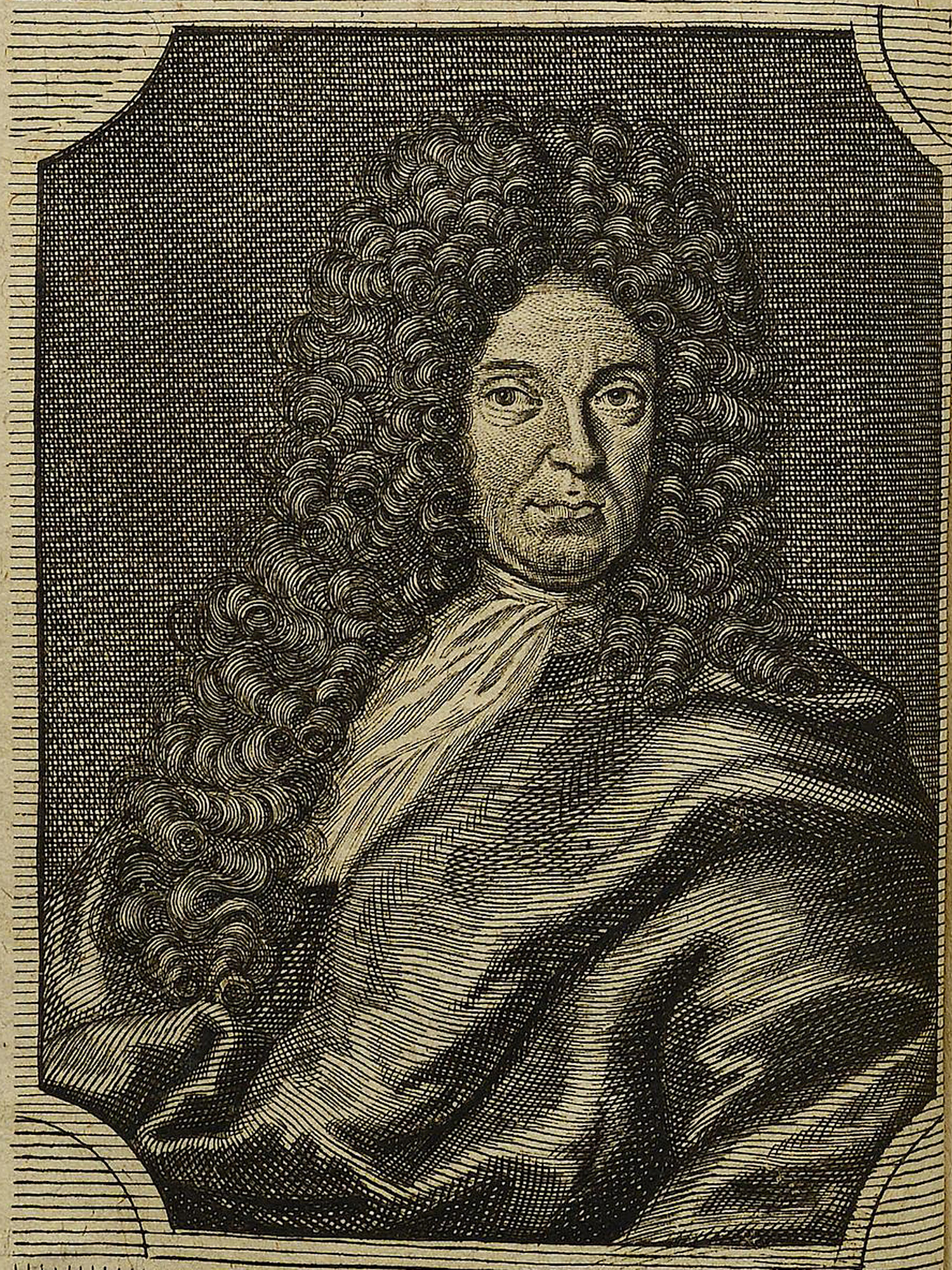 Porträt von Tornow, Peter  (Die Gelehrte Fama, welche den gegenwärtigen Zustand der gelehrten Welt und sonderlich derer deutschen Universitäten entdecket., 1712, 17. T., ungez. Bl. am Anf. d. Stückes. [Zuschnitt auf Schmuckrahmen])