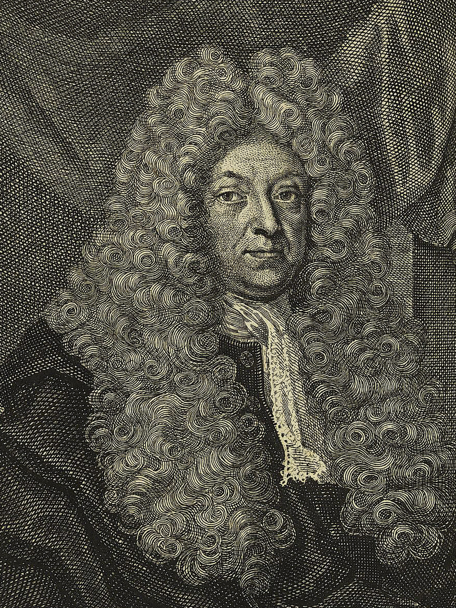 Porträt von Bohn, Johann  (Die Gelehrte Fama, welche den gegenwärtigen Zustand der gelehrten Welt und sonderlich derer deutschen Universitäten entdecket., 1711, 9. T., ungez. Bl. am Anf. d. Stückes. [Zuschnitt auf Schmuckrahmen])