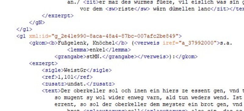 Die Forschungsdaten des MWB Projekts "Mittelhochdeutsches Wörterbuch" wachsen und wandeln sich mit der langen Projektlaufzeit. Im Rahmen dreier Werkverträge möchten wir Teilaspekte unserer Daten vereinheitlichen, Annotationen vertiefen und neue Daten aufbereiten lassen.