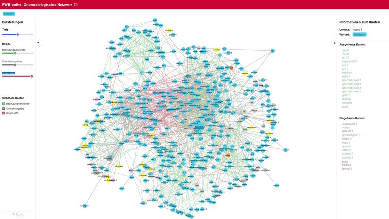 Das „Frühneuhochdeutsche Wörterbuch“ ist das erste und im internationalen Vergleich bislang einzige Wörterbuch, das den Wortschatz in seiner semantischen Vernetzung sichtbar macht. Seit März 2025 stellt es über die Webseite (fwb-online) knapp 125.000 individuell anpassbare Netzwerke zur Verfügung, durch die Bedeutungsverwandtschaften, Gegensätze und Orientierungsfelder innerhalb des frühneuhochdeutschen Wortschatzes anschaulich vermittelt werden. So erkennt man mit einem Blick, wie die geschichtlichen Schreiber von Texten ihre Wirklichkeit verfasst und versprachlicht haben - ein Meilenstein der interaktiven Lexikografie!