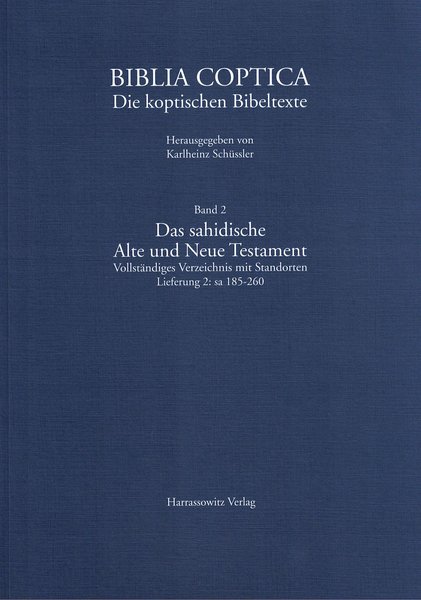 The newest fascicle of the late Karlheinz Schüssler's manuscript catalogue Biblia Coptica 2.2, prepared for publication by Hans Förster and Frank Feder, just appeared. This fascicle contains 76 mostly OT manuscripts.
